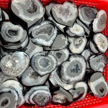 بيع بالجملة جودة عالية كريستال نحت القلب الجيود الحرير الأسود العقيق القلب لديكور المنزل