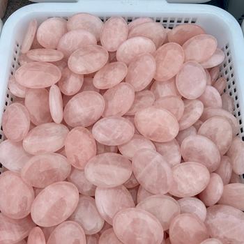 للبيع بالجملة بالجملة أحجار كوارتز ورد طبيعية مصقولة جوهرة كريستال شكل بيضاوي لشفاء النخيل للديكور
